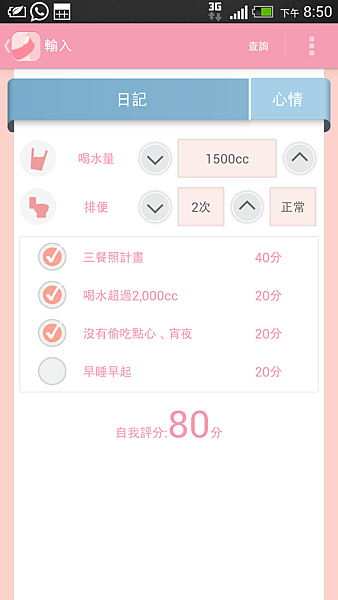 另外有排便次數記錄 與每日自我評分......
