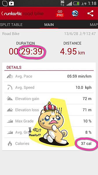 雖說騎的都是"平地".....但是....他奶奶的!半小時才消耗37卡啦@_@
