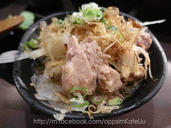 頂端加上柴魚片與薑悤調味 (灑花)