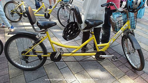 馬上跟現場新認識的團員湊成一組騎一台協力車