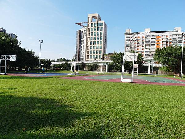 水岸公園占地開闊 籃球場自行車步道都設計得相當便民