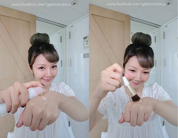 粉底液擠在手背上--------------->使用「101斜頭粉底刷」輕沾取
