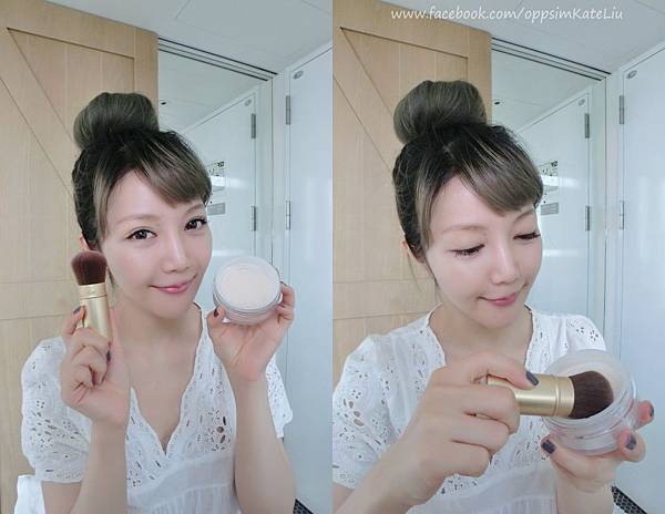 少量多次刷上蜜粉一分鐘立即完成定妝動作
