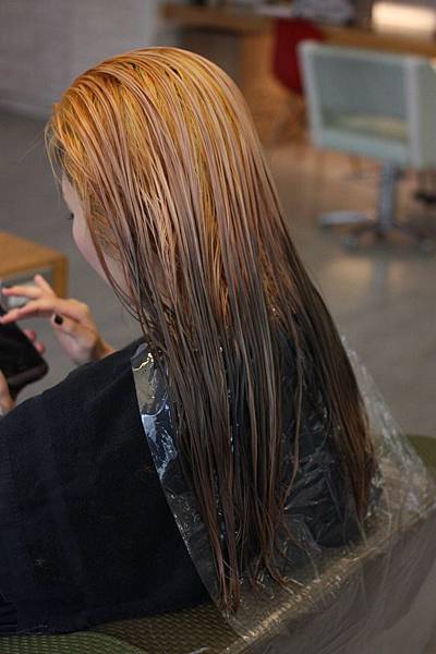 開始進行漂染新長出的黑髮