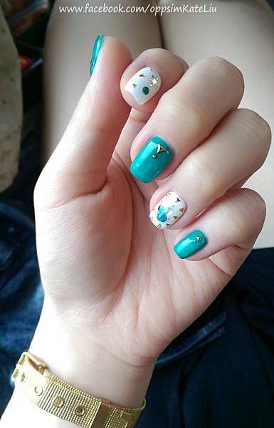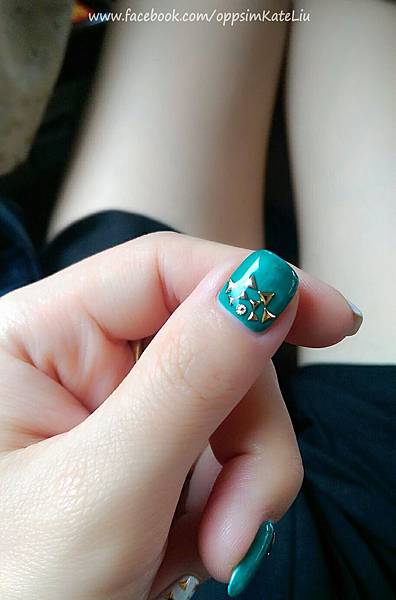 大拇指用金色三角形的金片裝飾 排列成放射狀