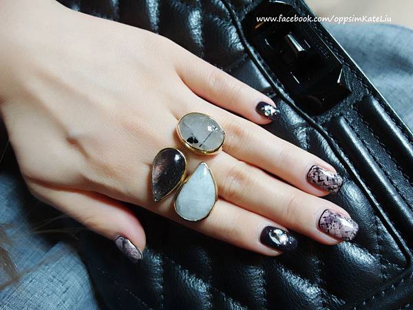 除了蟒蛇紋之外 其餘的幾根指頭使用黑色底搭配立體鑽飾