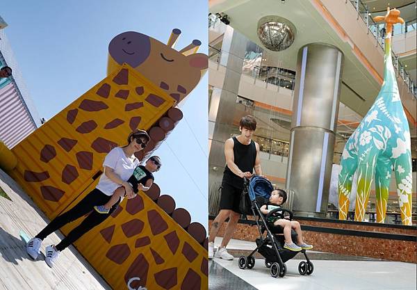 兒子看到GB樓的巨型長頸鹿非常興奮