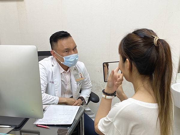 接著拿著鏡子與林醫師溝通 訴說著最想改善的部位