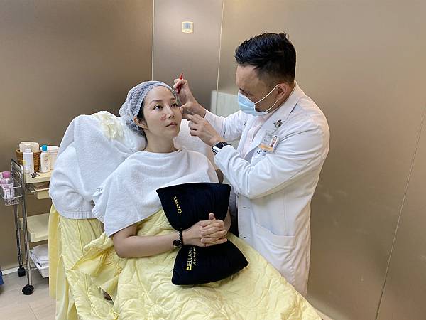 林醫師在臉上用紅筆做記號 用以確認待施打部位