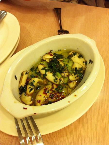 底下看似水的液體其實是橄欖油 不過吃起來一點也不膩!