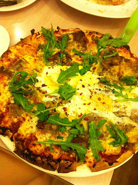 豔陽披薩是薄皮烤的脆脆的 一端上來香氣似溢