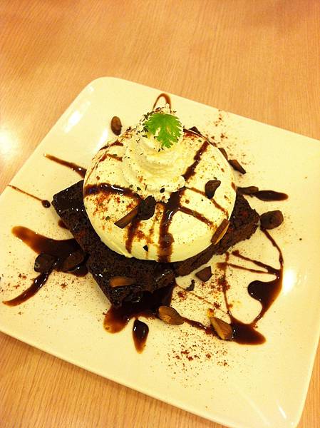 甜點是"熱布朗尼香草冰淇淋"