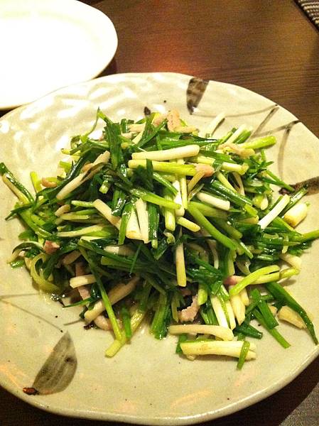 肉絲炒烏來珠蔥 它的蔥體有別於一般市面上的蔥