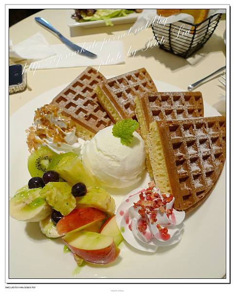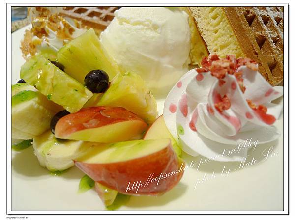 鬆餅來時著實的嚇了我一跳因為很大一份(絕對不是我頭小)